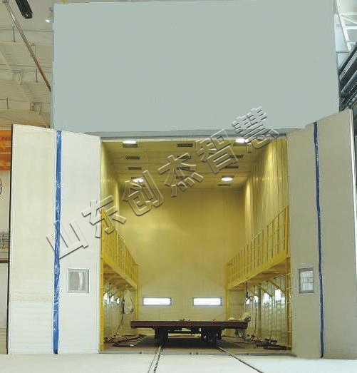 噴砂房左右兩側各配有一臺電動工作小車,方便操作員噴砂作業,整個噴砂房內襯耐磨損、降噪音的橡膠襯板,兩套濾筒式除塵器用于整個噴砂房的通風與除塵,粉塵含量小于60mg/m3。一套自動丸料風選和篩選裝置可將過大或過小的廢料從介質中分選出來,落入現場的回收廢料儲料斗,配有自動丸料風選振動篩。 同時提供作業員保護裝置,包括操作人員保護頭盔、連體防砂衣和噴砂手套、呼吸過濾器和呼吸調溫器, 噴砂處理后可達到良好的表面質量和清潔度,噴砂設備可以任意選用各種磨料進行噴砂,適合鋼、不銹鋼、鋁合金等不同材質的機車車輛表面噴砂清理處理。整套噴砂系統可根據客戶的需求量身定制,滿足客戶需求、環保噴砂清理的需求。 噴砂系統要求能夠處理的車體外形尺寸,噴砂的區域為鋁合金車體、不銹鋼車體以及鋼車體的內外表面,噴砂后的車體表面粗糙度,車輛門、窗數量多,無整片的噴砂區域,同時產品批量小、品種多,因此噴砂系統須靈活機動,能夠滿足一節車的生產要求。噴砂式產生的粉塵、噪聲對環境有非常大的影響,為了符合環保要求,噴砂系統的粉塵排放。